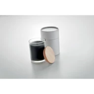 Roślinna woskowa świeca o zapachu wanilii w szkle z bambusowym wieczkiem, prezentowana w papierowym pudełku prezentowym w kształcie tuby. Spraw, aby Twój dom otulił przyjemny zapach zapachu wanilii. Gdy nie używasz świecy, zamknij ją bambusową pokrywką, aby nadać jej bardziej naturalny wygląd Czas palenia: 40 godzin. Bambus jest produktem naturalnym, mogą występować niewielkie różnice w kolorze i rozmiarze poszczególnych elementów, co może mieć wpływ na końcowy efekt dekoracji.240gr.