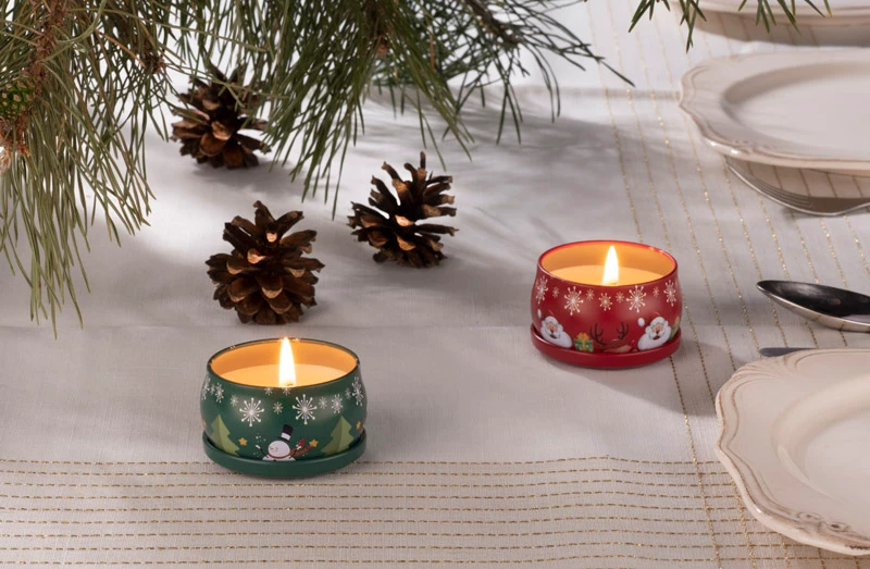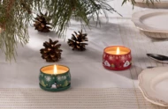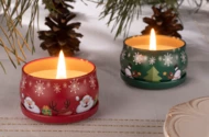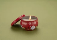 Świeca KERI z naturalnym woskiem sojowym o zapachu delikatnego rumianku. Świeca w oryginalnej zamykanej puszce z nadrukiem świątecznym.