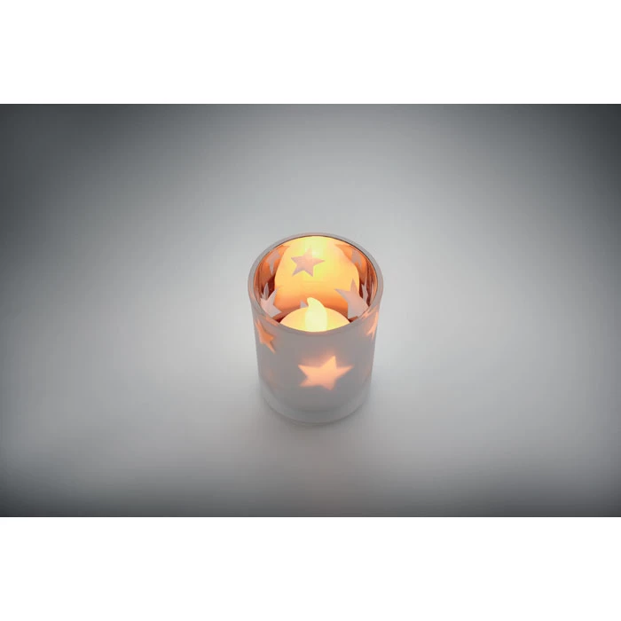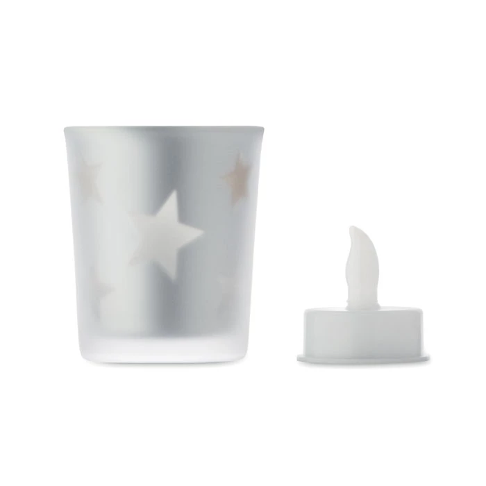 Świeczka LED typu tealight z PP w szklanym słoiku. w zestawie 1 bateria CR2032.