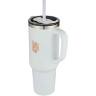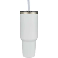 Kubek z podwójnymi ściankami z miedzianą izolacją próżniową, posiadający certyfikat RCS, wykonany w 91% ze stali nierdzewnej pochodzącej z recyklingu, która utrzymuje niską temperaturę napojów przez co najmniej 24 godziny. Posiada słomkę Tritan i funkcję przesuwania pokrywki zapobiegającą rozlaniu płynu. Wykonana w 100% z tworzyw sztucznych pochodzących z recyklingu obrotowa pokrywka bezpiecznie utrzymuje słomkę na miejscu i można ją łatwo obrócić, aby odsłonić otwór na napój. Trwała zewnętrzna powłoka proszkowa. Pojemność: 1200 ml. Tylko do mycia ręcznego.