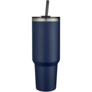 Kubek z podwójnymi ściankami z miedzianą izolacją próżniową, posiadający certyfikat RCS, wykonany w 91% ze stali nierdzewnej pochodzącej z recyklingu, która utrzymuje niską temperaturę napojów przez co najmniej 24 godziny. Posiada słomkę Tritan i funkcję przesuwania pokrywki zapobiegającą rozlaniu płynu. Wykonana w 100% z tworzyw sztucznych pochodzących z recyklingu obrotowa pokrywka bezpiecznie utrzymuje słomkę na miejscu i można ją łatwo obrócić, aby odsłonić otwór na napój. Trwała zewnętrzna powłoka proszkowa. Pojemność: 1200 ml. Tylko do mycia ręcznego.