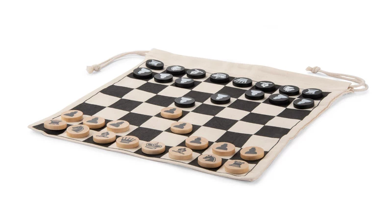 Szachy w woreczku ROYAL to popularna gra strategiczna w podróżnym wydaniu. Bawełniany worek z szachownicą posłuży jako plansza do gry oraz miejsce do przechowywania drewnianych pionków.