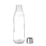 Szklana butelka do picia 650 ml z pokrywką ze stali nierdzewnej. Nie nadaje się do napojów gazowanych. Szczelna.