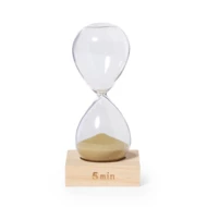 Klepsydra 5 min., wykonana ze szkła borokrzemowego, drewniana podstawka w komplecie