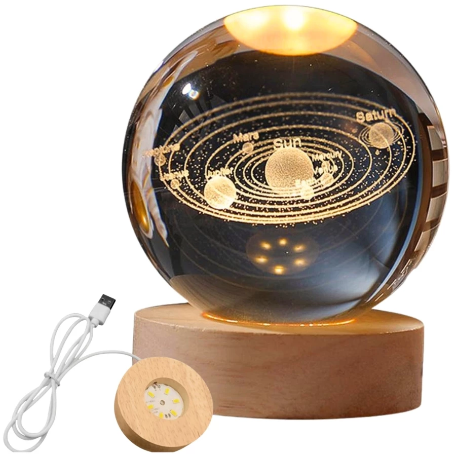 Szklana Kula 3D Układ Słoneczny - Lampa Nocna LED USB na Biurko