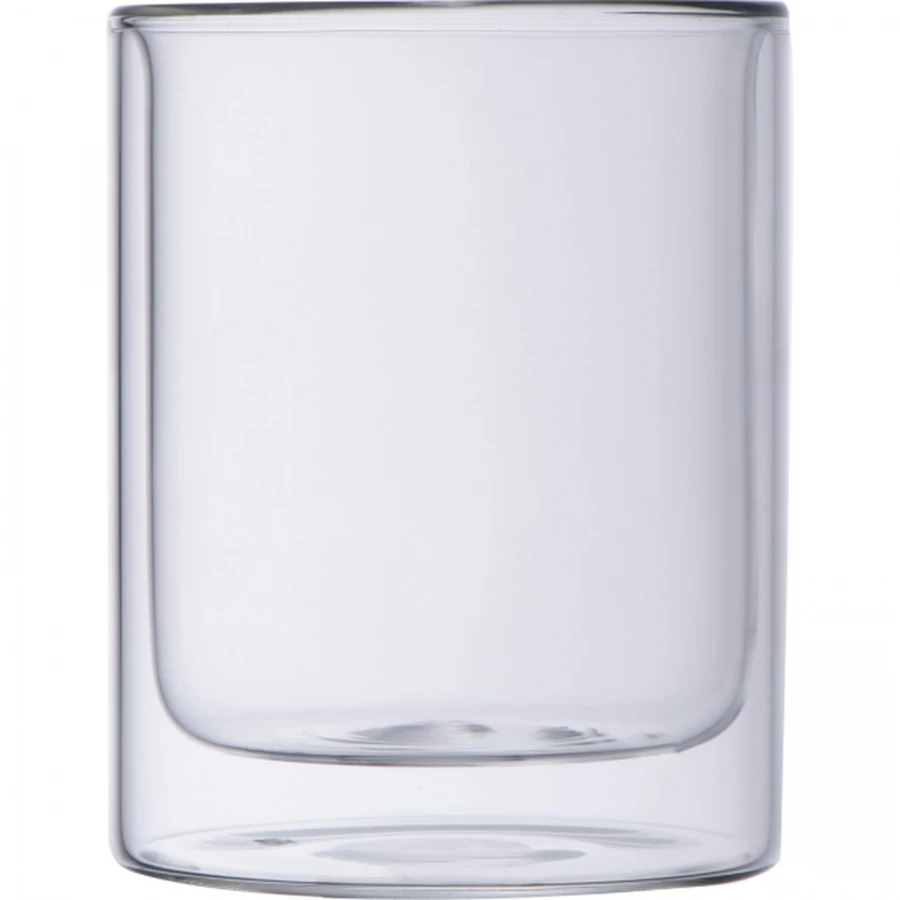 Szklanka z podwójnymi ściankami, wykonana ze szkła borokrzemowego, o pojemności 330 ml.