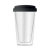 Dwuścienna wysoka szklanka borokrzemowa z silikonową pokrywką. Pojemność 350 ml