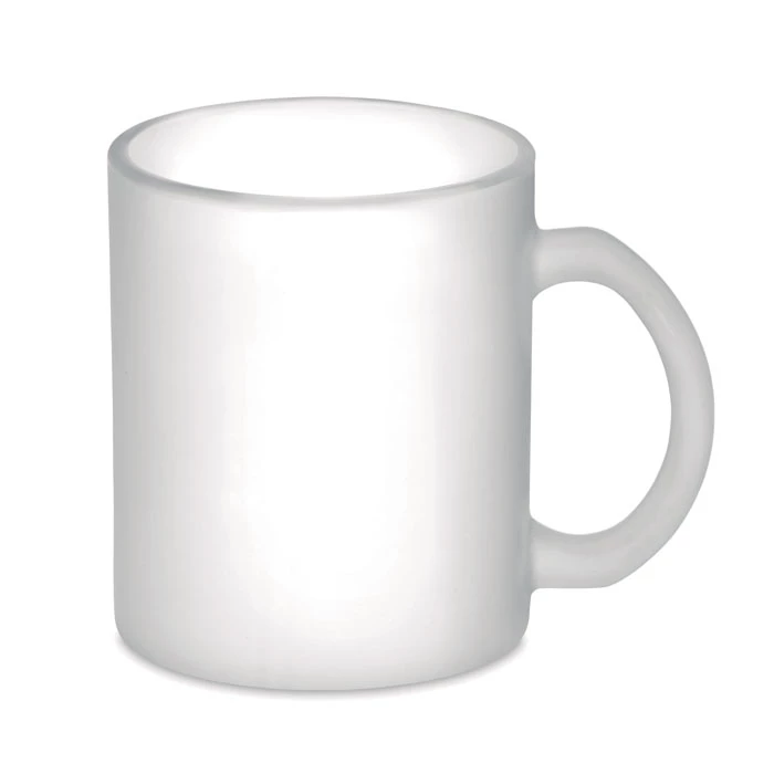 Szroniony, matowy szklany kubek o pojemności 300 ml ze specjalną powłoką do sublimacji.