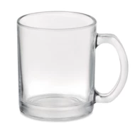 Błyszczący szklany kubek o pojemności 300 ml ze specjalną powłoką do sublimacji.