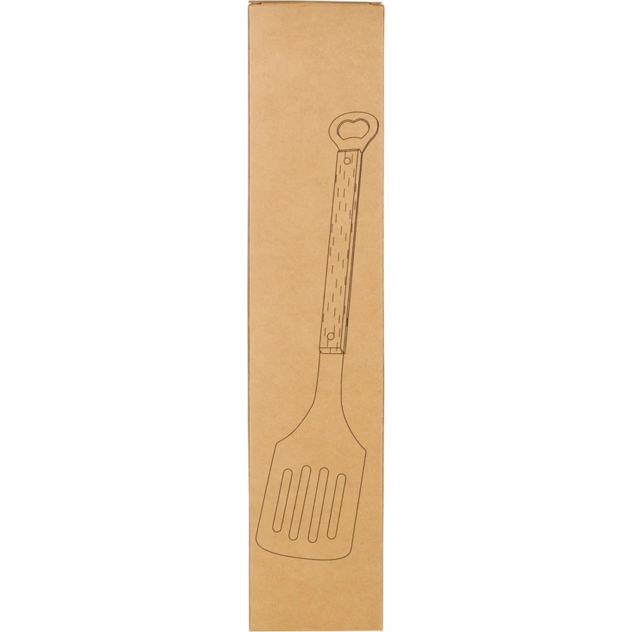 Szpatułka kuchenna z funkcją otwieracza do butelek, drewniany trzon, zapakowany pojedynczo w papierowe pudełko, produkt wykonany ze stali nierdzewnej 430/410 i drewna bukowego
