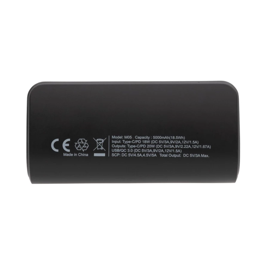 Power bank 5000 mAh, szybkie ładowanie przewodowe 20W, wykonany z ABS z recyklingu z certyfikatem RCS, wyjście USB typu C, ślad węglowy produktu: 0 kg CO2