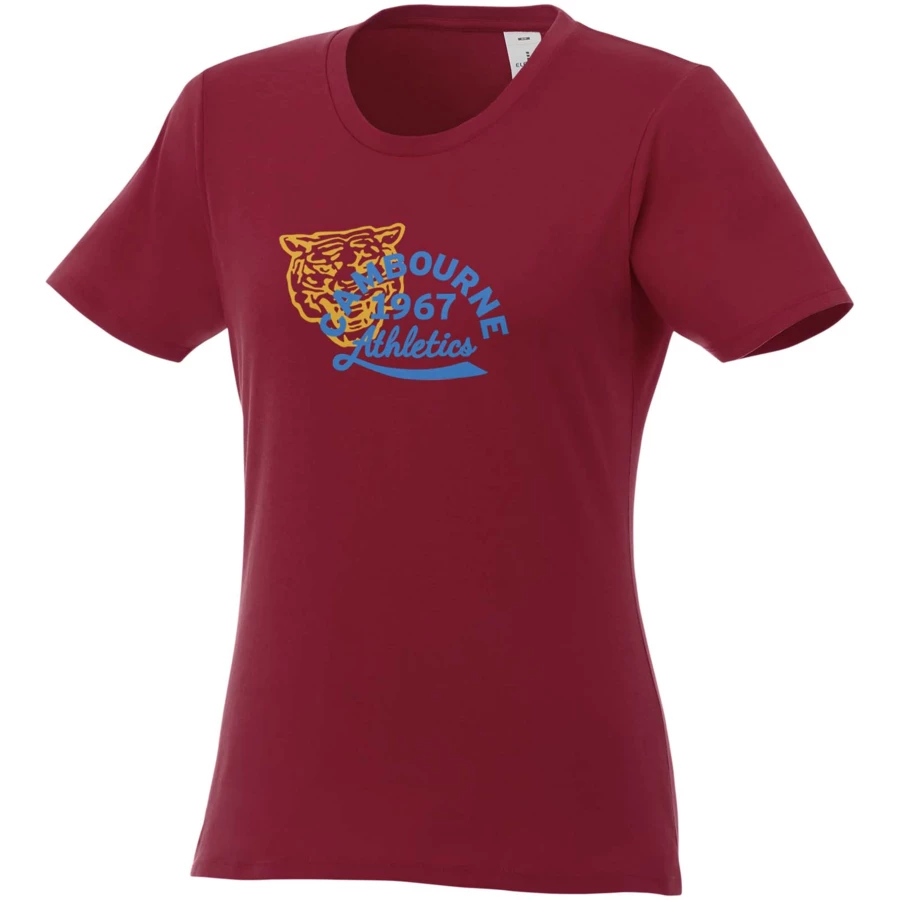 Damska koszulka Heros z krótkim rękawem jest idealna na wszystkie imprezy. Dopasowane szwy boczne, krótsze rękawy i niższy dekolt zostały starannie przemyślane, aby stworzyć kobiecy krój i design. Wykonany z bawełny o gramaturze 150 g/m2 jest lekki i wygodny w noszeniu. Dodatkowo, materiał bawełniany jest miękki w dotyku i idealny dla wysokiej jakości brandingu. Dzięki wewnętrznej metce na karku, którą można łatwo usunąć w dwóch segmentach, projekt pozostawia miejsce na niestandardowy, wewnętrzny branding przy zachowaniu informacji o rozmiarze.