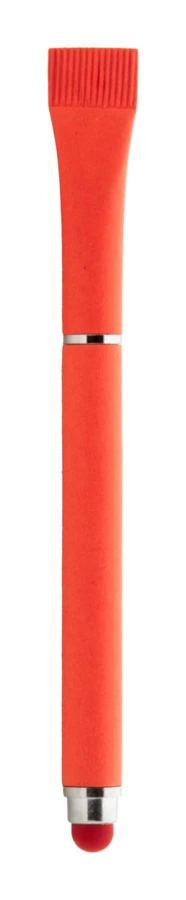 Długopis z papieru z recyklingu z gumką do ekranów dotykowych z dopasowaną kolorystycznie zakrywką. Niebieski wkład.