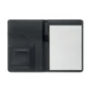 Teczka A5 w 2 odcieniach 300D RPET. Wymienny notatnik A5. 40 stron z białego papieru bambusowego (20 arkuszy). Uchwyt na długopis. Wewnętrzna kieszonka na karty i jedna duża przegroda.