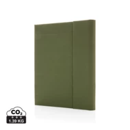 Teczka konferencyjna A4 z notatnikiem (20 kremowych kartek 70 g/m2 w linie z papieru z recyklingu z certyfikatem FSC® (Forest Stewardship Council)), magnetyczne zamknięcie, wewnątrz duża kieszeń, 2 kieszenie na akcesoria i pętla na akcesoria do pisania, poliester z recyklingu wewnątrz i na zewnątrz, wykonana z 3,2 poddanych recyklingowi butelek PET (500 ml), dzięki zastosowaniu technologii AWARE™ wykorzystane materiały są identyfikowalne z pochodzenia, 2% wpływów z każdego sprzedanego produktu z kolekcji Impact jest przekazywane na rzecz Water.org, nie zawiera PVC