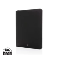 Teczka konferencyjna A4 z notatnikiem (20 kartek z papieru kamiennego w linie), zamykana na zamek błyskawiczny, wewnątrz stojak na telefon / tablet, uchwyty na drobne akcesoria, kieszenie na wizytówki, notatki i dokumenty, pętla na akcesoria do pisania, wykonana w 100% z PU z recyklingu z certyfikatem RCS (Recycled Claim Standard) który gwarantuje, że wykorzystane materiały pochodzą z recyklingu, całkowita zawartość materiału z recyklingu obliczona w oparciu o wagę całkowitą przedmiotu: 13,8%, nie zawiera PVC, ślad węglowy produktu: 1,92 kg CO2