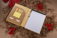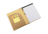 Teczka konferencyjna A4 DOSI to wszechstronny i praktyczny gadżet, idealny na spotkania biznesowe i konferencje. W jej wnętrzu znajduje się notes w linie, kieszeń na dokumenty oraz dwie mniejsze kieszonki na wizytówki i notatki. Teczka jest usztywniana i wyposażona w papierowy długopis, żółte karteczki samoprzylepne oraz zestaw małych karteczek idealnych do zaznaczania ważnych miejsc w notatkach. DOSI jest zamykana na gumkę, co zapobiega zgubieniu dokumentów. Wyprodukowana z papieru, który stanowi ekologiczną alternatywę dla teczek z materiałów syntetycznych.