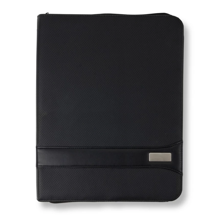 Teczka konferencyjna ok. A4 na zamek z notatnikiem (30 kartek w linie), 2 duże kieszenie i 4 mniejsze, bez przyborów do pisania