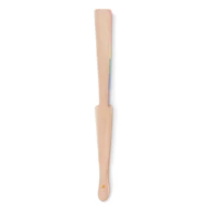 Wachlarz z drewna i tkaniny poliestrowej z tęczowym wzorem.
