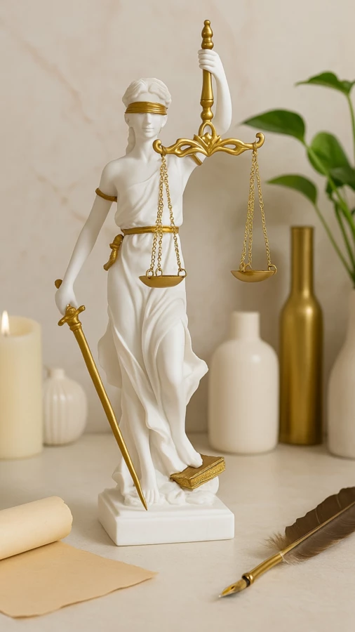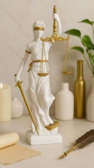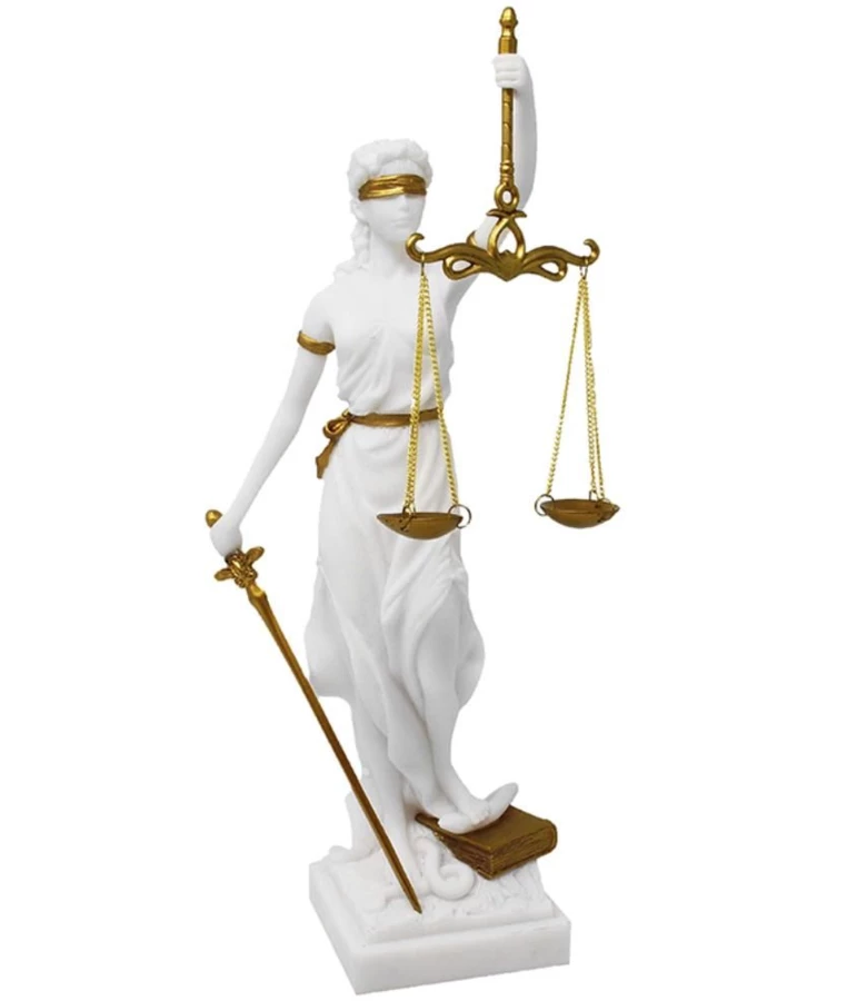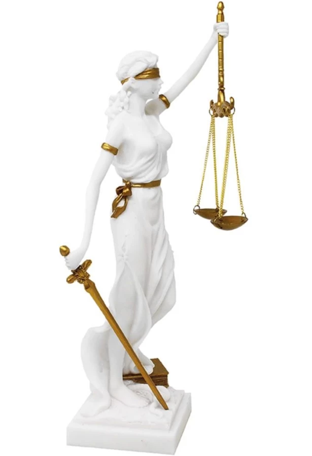 Temida to jeden z najpopularniejszych symboli w świecie prawa. Figurka bogini sprawdzi się jako prezent dla prawnika oraz sędziego. Będzie świetną dekoracją w kancelarii lub biurze sędziego. Figurka utrzymana w białym kolorze ze złotymi akcentami w postaci opaski na oczy, wagi oraz miecza.