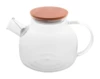 Czajnik ze szkła borokrzemowego z bambusową pokrywką i sitkiem do herbaty ze stali nierdzewnej, w papierowym pudełku. 1000 ml.