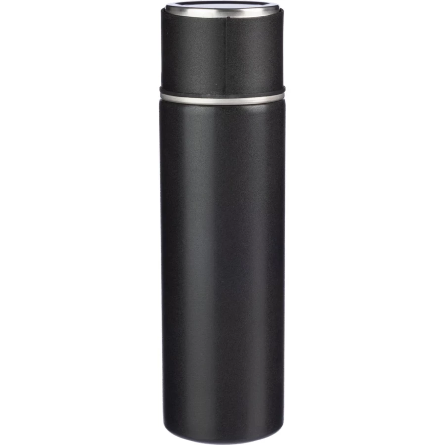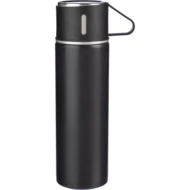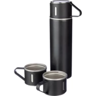 Termos 420 ml z trzema kubkami 150 ml w zestawie, posiada podwójne ścianki ze stali nierdzewnej z próżnią między ściankami, co spowalnia oddawanie temperatury na zewnątrz, zakrętka funckjonująca jako kubek umożliwia wygodne i higieniczne dzielenie się napojem, zestaw zapakowany w brązowy kartonik, produkt wykonany ze stali nierdzewnej, utrzymuje temperaturę napojów gorących do 20 godzin +leakproof