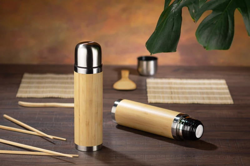 Termos BAMBI to produkt zarówno estetyczny wizualnie jak i solidny oraz funkcjonalny. Dzięki próżni między ściankami utrzymuje temperaturę do 12 godzin. Wykonany jest ze stali nierdzewnej o podwyższonym standardzie, warstwa zewnętrzna to naturalny bambus idealnie dopasowany do stali.