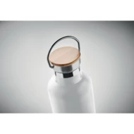 Dwuścienny termos próżniowy z bambusową pokrywą i uchwytem do przenoszenia. Pojemność: 1L. Bambus jest produktem naturalnym, dlatego mogą wystąpić nieznaczne różnice w kolorze, wzorze i rozmiarze.