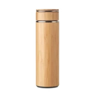 Termos z podwójną ścianką, ze stali nierdzewnej i bambusa z dodatkowym zaparzaczem herbaty w środku. Dzięki umieszczonemu wewnątrz zaparzaczowi, możesz zaparzyć świeżą herbatę o ulubionym smaku. Pojemność 400 ml. Szczelny. Bambus jest produktem naturalnym, mogą wystąpić niewielkie różnice w kolorze i wielkości poszczególnych elementów, co może mieć wpływ na ostateczny efekt dekoracji. FSC®-certified | FSC 100%, N5.7, FSC-C213206