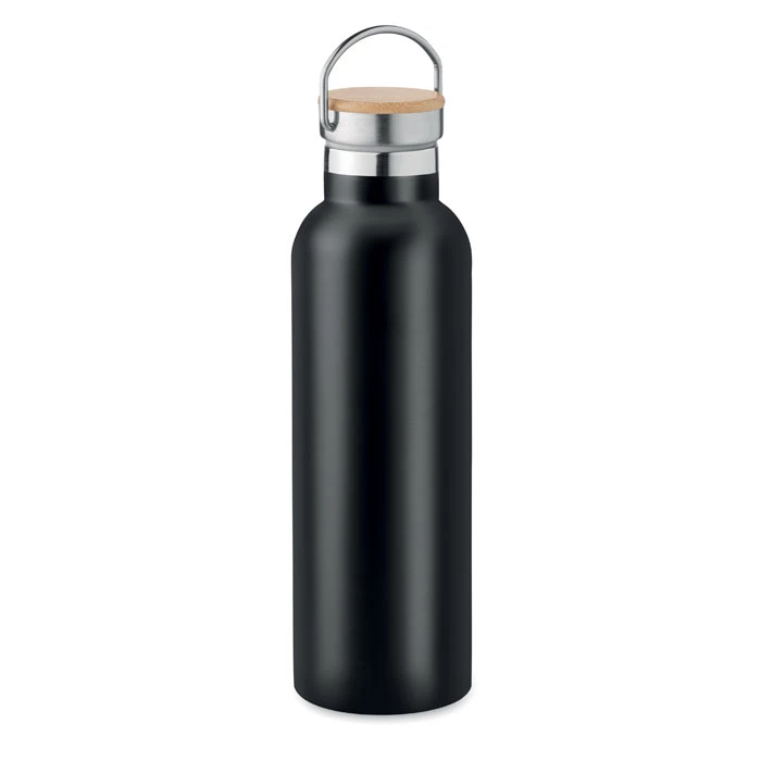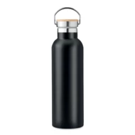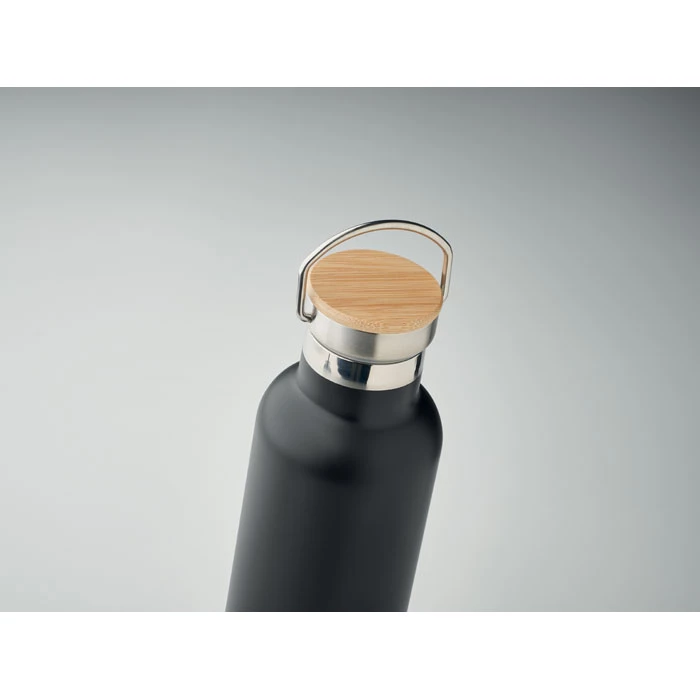 Termos z podwójną ścianką ze stali nierdzewnej z bambusową pokrywką i uchwytem. Pojemność: 750 ml. Nie przecieka. Bambus jest produktem naturalnym, dlatego mogą wystąpić nieznaczne różnice w kolorze, wzorze i rozmiarze.