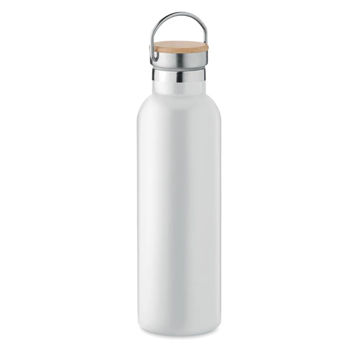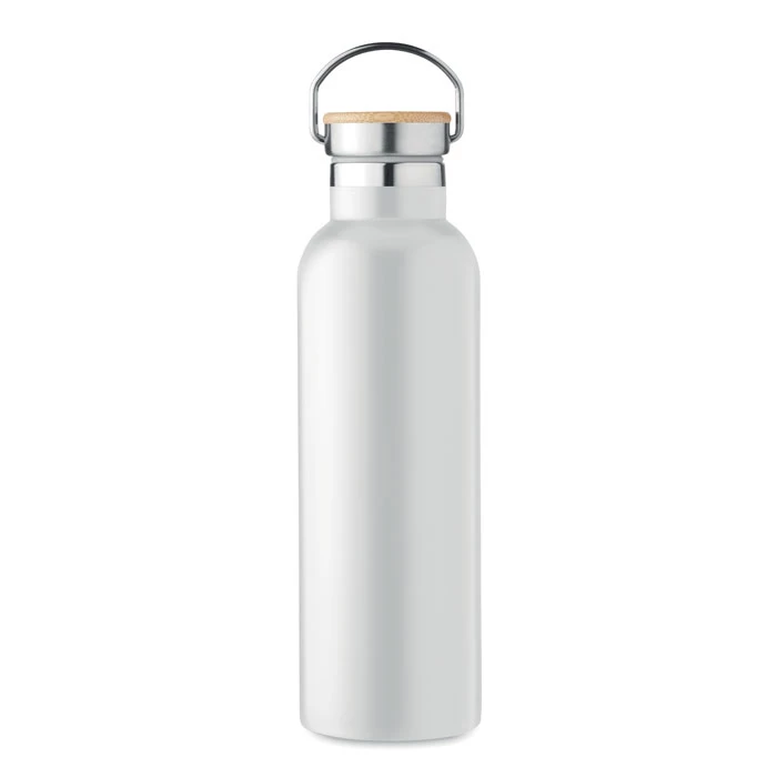 Termos z podwójną ścianką ze stali nierdzewnej z bambusową pokrywką i uchwytem. Pojemność: 750 ml. Nie przecieka. Bambus jest produktem naturalnym, dlatego mogą wystąpić nieznaczne różnice w kolorze, wzorze i rozmiarze.