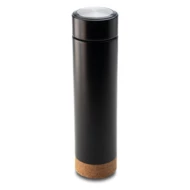 Termos próżniowy o pojemności 450 ml z dwiema metalowymi ściankami, świetnie utrzymujący ciepło, szczelny. Wykonany ze stali nierdzewnej 18/8 o podwyższonej jakości. Urzeka eleganckim połączeniem czerni i korkowej podstawy. Posiada stalowy zaparzacz do herbaty. Utrzymuje temperaturę powyżej 40°C przez 15 godzin.