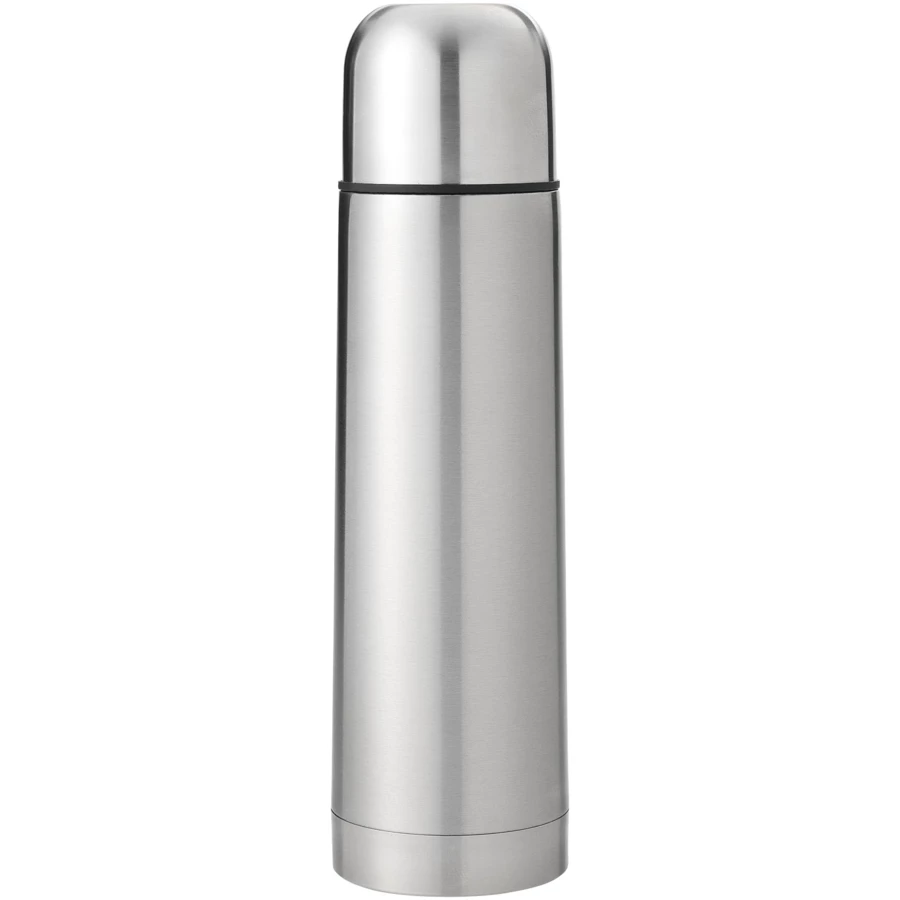 Podwójne ścianki ze stali nierdzewnej, zintegrowany kubek w nakrętce. Możliwość nalewania jedną ręką, dzięki przyciskowi rynienki spustowej, która zamyka się automatycznie po przekręceniu nakrętki. Pojemność 750 ml.