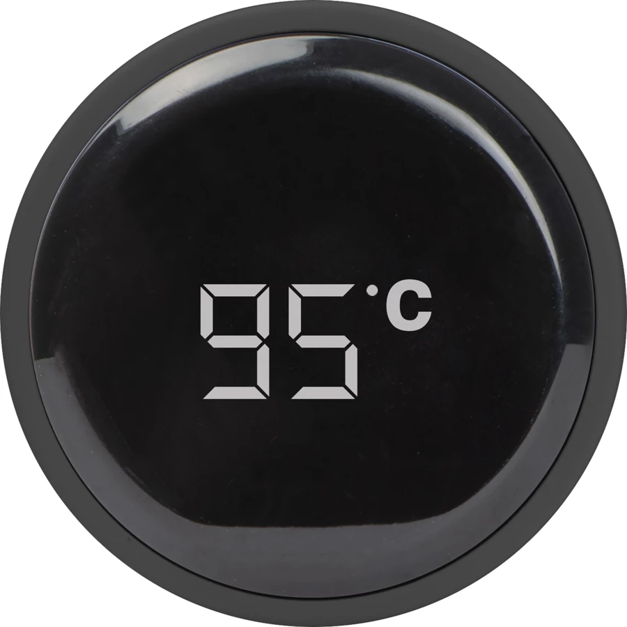 Termos ze stali nierdzewnej z elektronicznym termometrem w plastikowej pokrywce. Wystarczy go dotknąć, a temperatura napoju pokazuje się na wyświetlaczu. Termos utrzymuje ciepłą temperaturę napoju do 6 godzin, a zimną - do 9. Pojemność 450 ml.