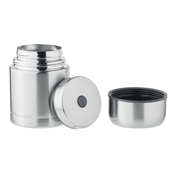 Pojemnik, termos z podwójną ścianką ze stali nierdzewnej z zakręcaną pokrywką. Pojemność: 800ml.