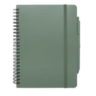 Notatnik w twardej oprawie Thalaasa w formacie A5 jest wykonany z przetworzonego plastiku pochodzącego z oceanów i zawiera 80 kartek w linie o gramaturze 70 g/m² w kolorze kremowym. Notatnik ma zaokrąglone rogi, elastyczne zamknięcie i szlufkę na długopis. Długopis z czarnym tuszem również został wykonany z plastiku pochodzącego z recyklingu i wyrzuconego do oceanu. Żywotność: 1000 metrów. Rozmiar stalówki: 1,0 mm.