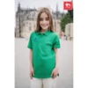 Dziecięca koszulka polo (unisex), ze 100% bawełny o splocie piqué (195 g/m²). Kołnierzyk i mankiety z prążkowanym wykończeniem. Kołnierzyk jest wzmocniony taśmą piqué. Z przodu przy kołnierzyku znajdują się 3 pasujące kolorystycznie guziki (dodatkowy guzik na wewnętrznym szwie). Zszywana po bokach, z małymi rozcięciami w szwach bocznych u dołu. Rozmiary: 2, 4, 6, 8, 10, 12
