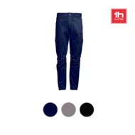 Spodnie robocze (200 g/m²) z poliestru ripstop (65%) i bawełny (35%). Zawierają 8 kieszeni: 2 kieszenie boczne z małą kieszonką, 2 kieszenie tylne z zatrzaskami i 2 kieszenie z boku nogawki z zatrzaskami. Elastyczna talia. Rozmiary: S, M, L, XL, XXL