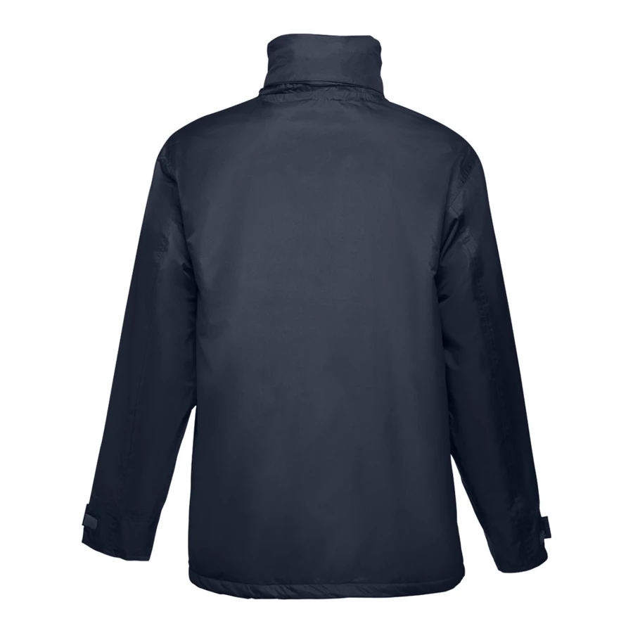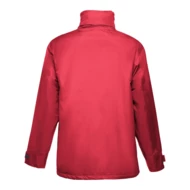 Uniwersalna wyściełana parka (unisex). 100% poliester. Zewnętrzna część: 100% poliester pongee 240 g/m² i wodoodporna powłoka PCV. Wnętrze: 100% poliester z tafty 65 g/m². Wypełnienie: 100% poliester 80 g/m². Obszyty czarnym polarem kołnierz (przylegające zapięcie). Chowany kaptur w kołnierzu, regulowany za pomocą ściągających sznurków z czarnymi stoperami. Przedni otwór z klapą, zamek błyskawiczny (pasujący kolorystycznie), przylegające zapięcie i zatrzaski w kolorze czarnym. 2 zewnętrzne kieszenie z patką i 2 wewnętrzne kieszenie (1 na telefon komórkowy) o przylegającym zamknięciu. Mankiety wewnętrzne z prążkowanej siatki 2x2. Regulowane mankiety zewnętrzne z przylegającym zapięciem. Termo-uszczelnione szwy. Wewnętrzny zamek błyskawiczny. Rozmiary: XS, S, M, L, XL, XXL