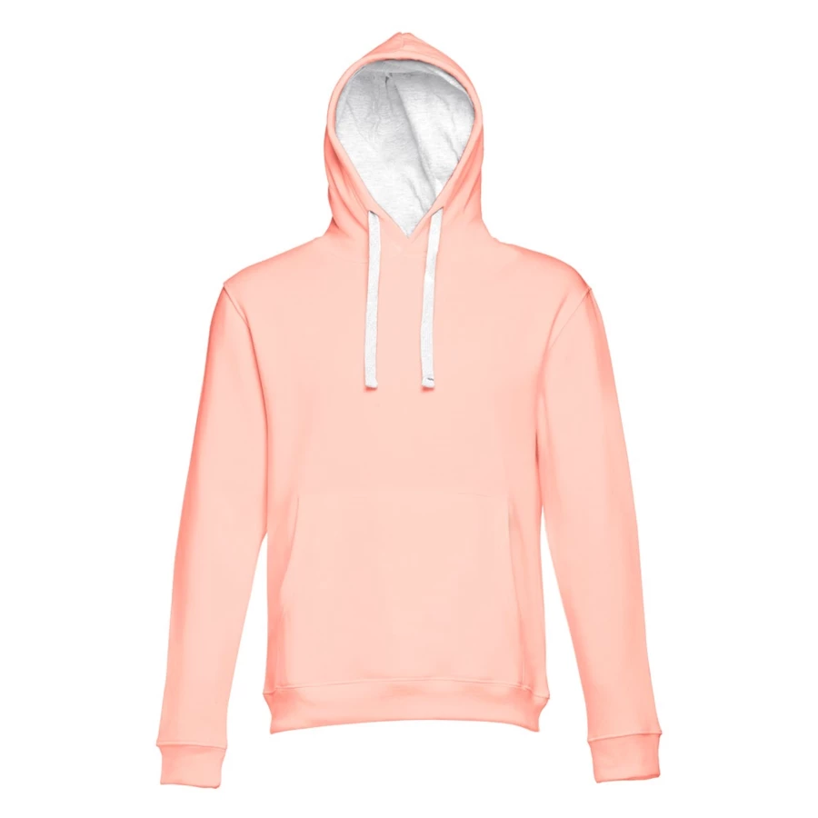 Bluza z kapturem (unisex). 50% bawełna i 50% poliester (320 g/m²), zgrzebna wewnątrz. Ściągacz 1x1 na mankietach i na dole. Kieszeń typu kangurek i kaptur ze sznurkami w kontrastującym kolorze. Rozmiary: S, M, L, XL, XXL