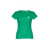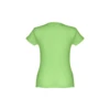T-shirt damski o dopasowanym kroju ze 100% bawełnianej dzianiny jersey (150 g/m²) ze zgrzebną przędzą bawełnianą (kolor 183: 90% bawełna/10% wiskoza, kolor 196: 98% bawełna/2% wiskoza). Posiada cienki podwójny kołnierz z dżerseju wzmocniony satynową taśmą skośną. Skrojony i zszyty, z podwójnym szwem na rękawach i u dołu. Rozmiary: S, M, L, XL, XXL