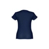 T-shirt damski o dopasowanym kroju ze 100% bawełnianej dzianiny jersey (150 g/m²) ze zgrzebną przędzą bawełnianą (kolor 183: 90% bawełna/10% wiskoza, kolor 196: 98% bawełna/2% wiskoza). Posiada cienki podwójny kołnierz z dżerseju wzmocniony satynową taśmą skośną. Skrojony i zszyty, z podwójnym szwem na rękawach i u dołu. Rozmiary: S, M, L, XL, XXL