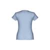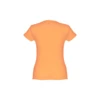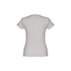T-shirt damski o dopasowanym kroju ze 100% bawełnianej dzianiny jersey (150 g/m²) ze zgrzebną przędzą bawełnianą (kolor 183: 90% bawełna/10% wiskoza, kolor 196: 98% bawełna/2% wiskoza). Posiada cienki podwójny kołnierz z dżerseju wzmocniony satynową taśmą skośną. Skrojony i zszyty, z podwójnym szwem na rękawach i u dołu. Rozmiary: S, M, L, XL, XXL
