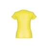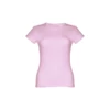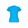 T-shirt damski o dopasowanym kroju ze 100% bawełnianej dzianiny jersey (150 g/m²) ze zgrzebną przędzą bawełnianą (kolor 183: 90% bawełna/10% wiskoza, kolor 196: 98% bawełna/2% wiskoza). Posiada cienki podwójny kołnierz z dżerseju wzmocniony satynową taśmą skośną. Skrojony i zszyty, z podwójnym szwem na rękawach i u dołu. Rozmiary: S, M, L, XL, XXL