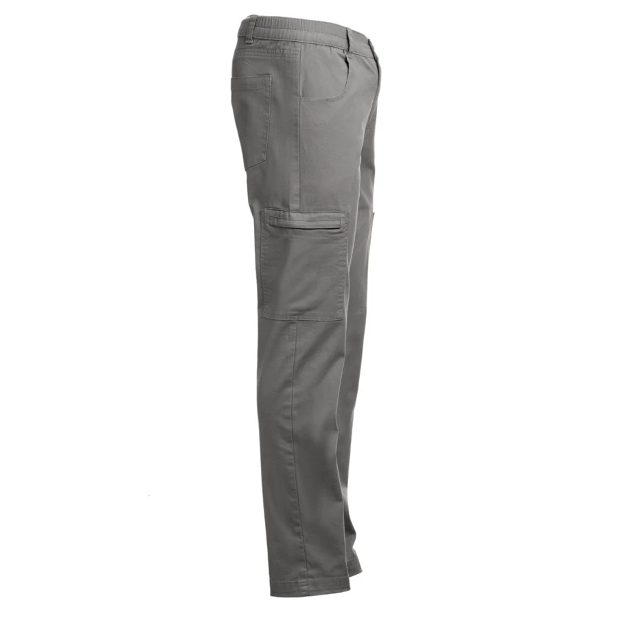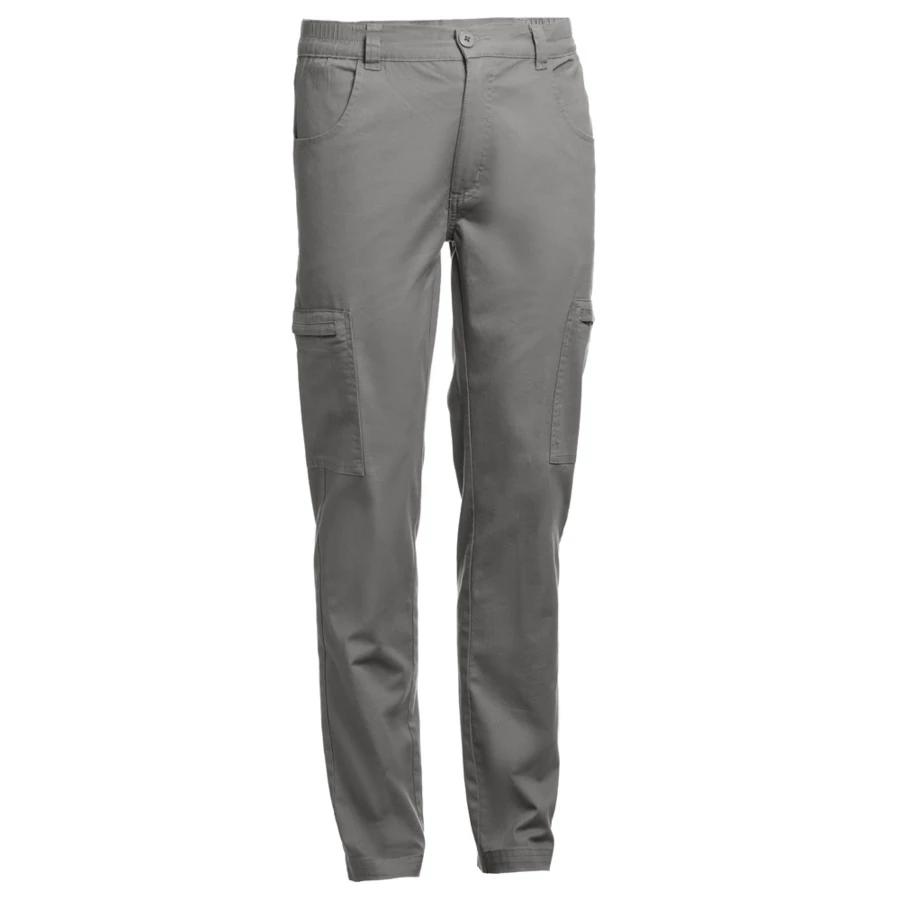Spodnie z 98% bawełny i 2% elastanu: 240 g/m². Zawiera 6 kieszeni: 2 boczne kieszenie z zamkiem błyskawicznym, 2 kieszenie przednie i 2 kieszenie tylne. W talii pasek z gumką po bokach. Rozmiary: S, M, L, XL, XXL, 3XL