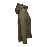 Damska kamizelka typu softshell z 96% poliestru i 4% elastanu (280 g/m²), z dwiema warstwami, odpinanym kapturem i wodoodporną powłoką. Kurtka z podszewką z 2 przednimi kieszeniami i ukośną kieszenią na piersi, wszystkie z zamkami. Regulowane mankiety o przylegającym zapięciu. Odpinany kaptur ze sznurkiem i paskiem o przylegającym zapięciu do mocowania przy kołnierzu. Kurtka ma zaokrąglony dolny brzeg. Rozmiary: S, M, L, XL, XXL