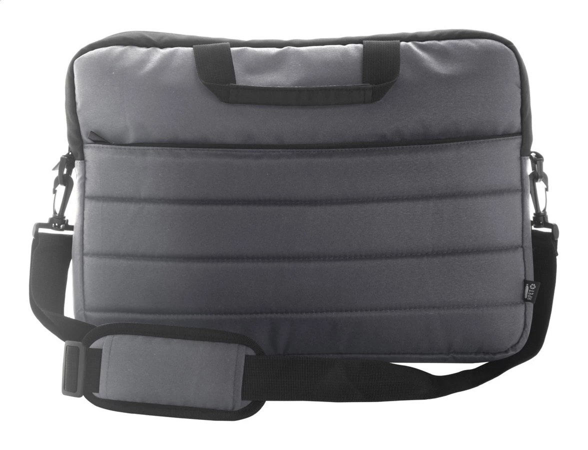 W pełni wyściełana torba na dokumenty RPET z przegrodami zapinanymi na zamek, wyściełaną przegrodą na laptopa (15"), paskiem do walizki i regulowanym paskami na ramiona. Poliester 300D RPET. Z metką RPET.