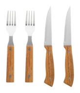 4-częściowy zestaw sztućców do steków ze stali nierdzewnej z rączkami z drewna akacjowego (2 noże do steków, 2 widelce). W pudełku w kształcie książki z papieru kraft.