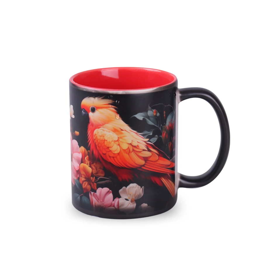 Klasyczny cylindryczny kształt z satynową w dotyku czarną powierzchnią. Dobrze znany model kubka, na którym pod wpływem gorącego płynu wyłania się nadruk w fotograficznej jakości. Posiada wnętrza w kilku modnych kolorach do wyboru. Matowa zewnętrzna powierzchnia jeszcze lepiej "ukrywa" nadruk kiedy kubek jest zimny.