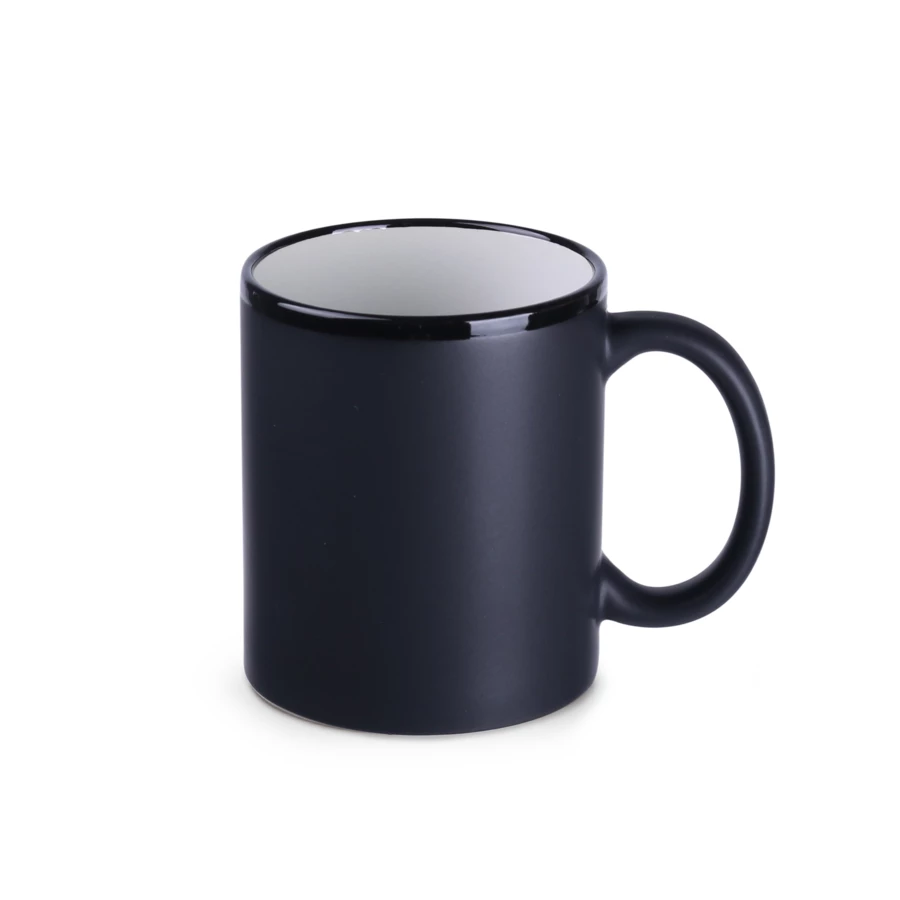 Czarna matowa wersja popularnego modelu o prostych ściankach i cylindrycznym kształcie. Posiada kilka kolorów wnętrza do wyboru oraz kontrastowe wykończenie błyszczącym paskiem, które dodatkowo podkreślą naniesiony na niego wyjątkowy branding.